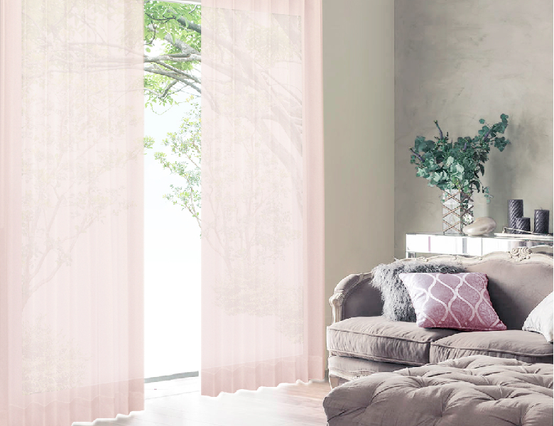 透け感を楽しめる、シャーベットカラーのレースカーテン。