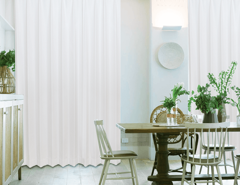 多くのドレープは生地が厚く、透けにくいようにできているので、閉じると目隠しにもなりますが、室内からも室外が見えないことや部屋が暗くなるといった問題もあります。
