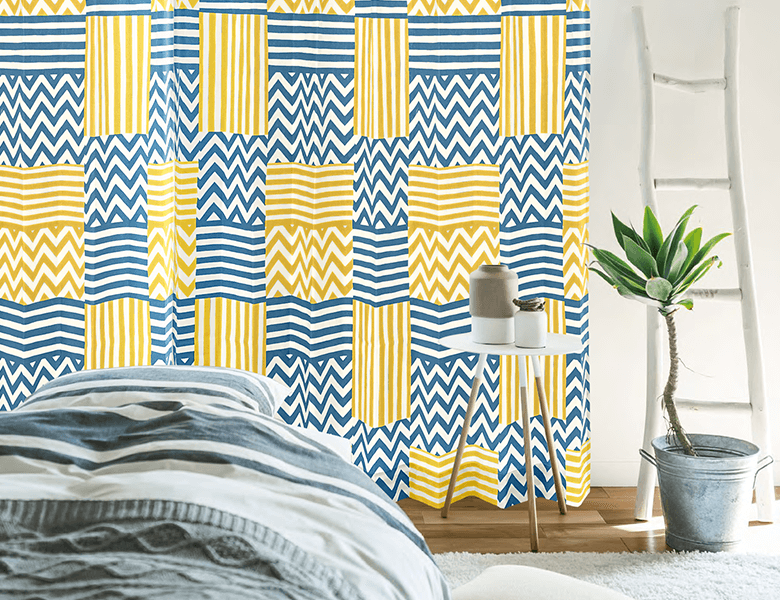 自然素材や白を基調とした家具を用いた部屋には、北欧デザインのカーテンが映えます。