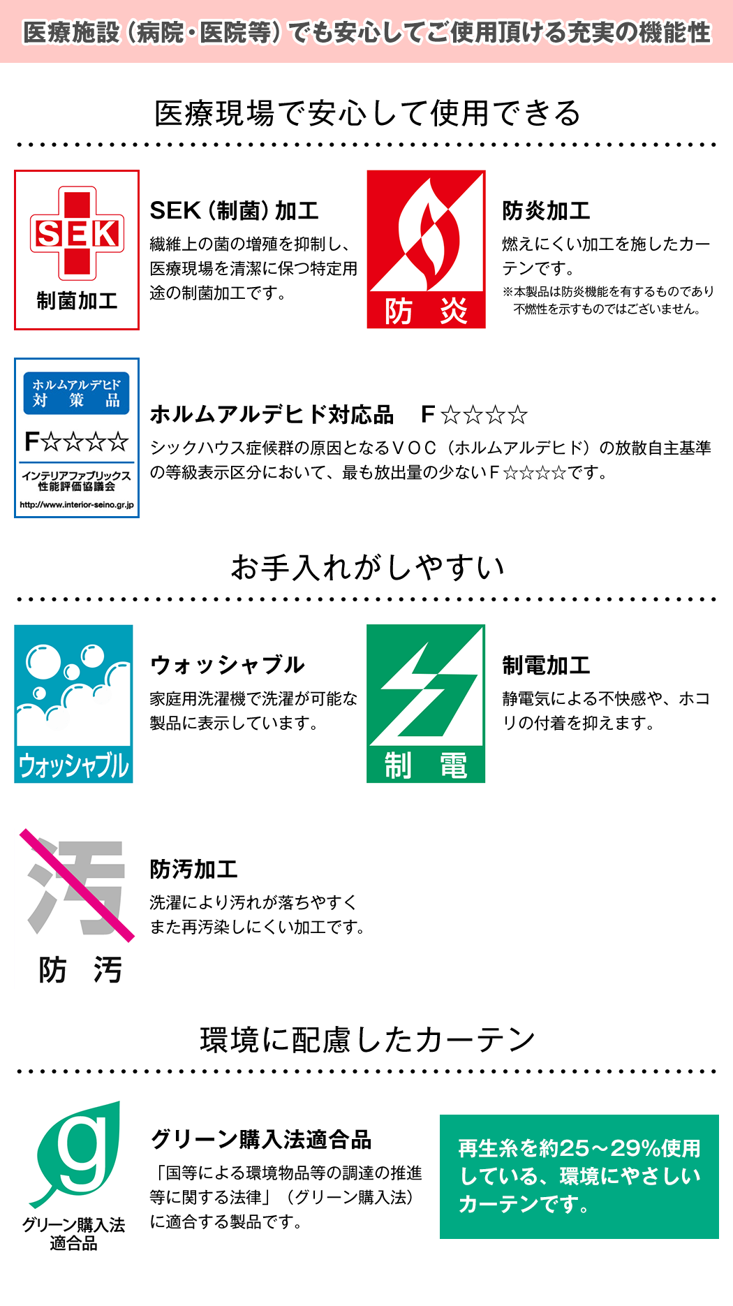 医療施設でご利用いただけるネットカーテンや窓辺のカーテンは、プライバシー保護や採光、調光といった機能性に加え、カラーやテクスチャ等をコーディネートすることでインテリアとしても空間を演出できます。