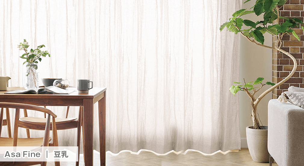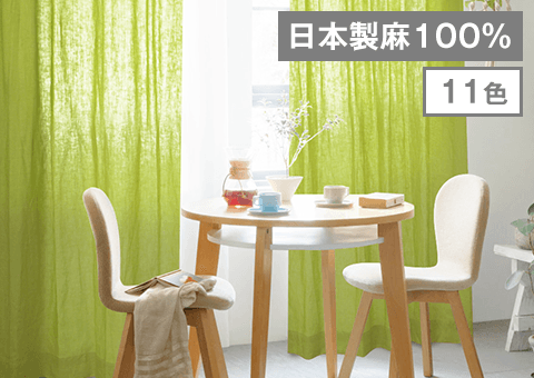 日本製麻生地100%を使用。天然素材特有のシャリ感や光沢が楽しめる麻カーテン