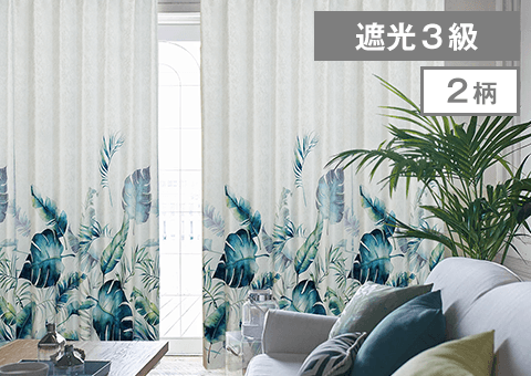 風合いリッチなジャガード生地にボタニカルデザインを大胆にあしらった遮光カーテン