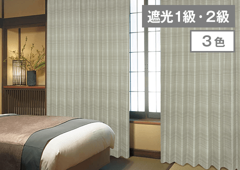 風通織りにより生地にほどよい厚みをもたせ、高級感を演出してくれる1級遮光カーテン
