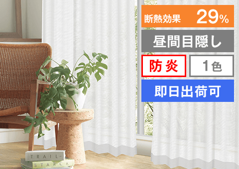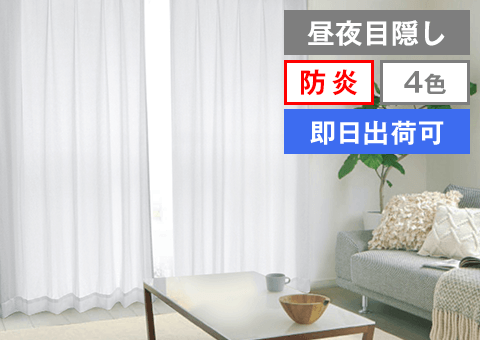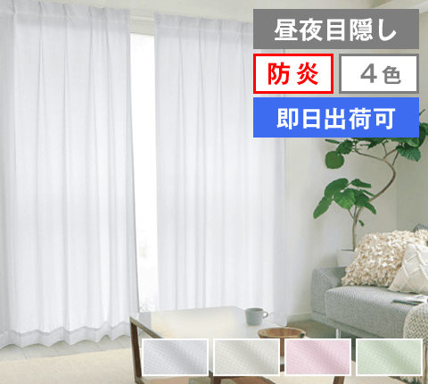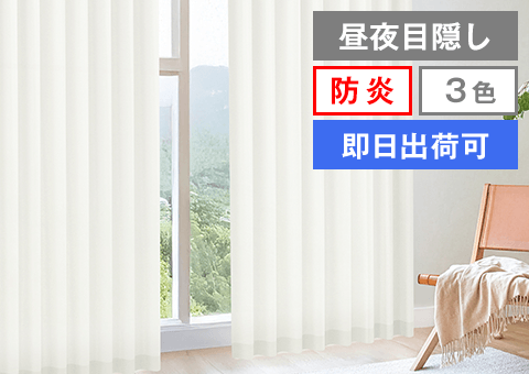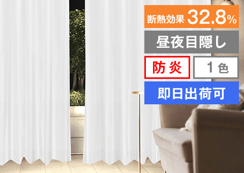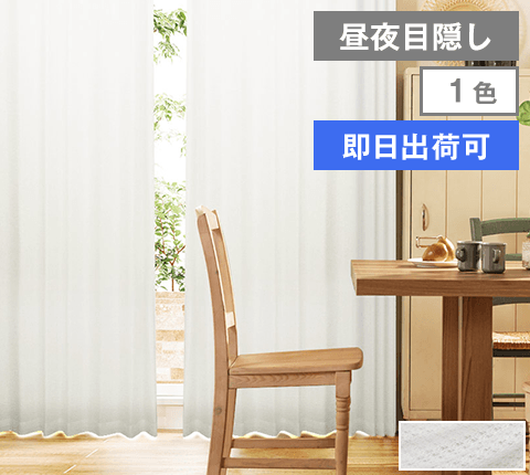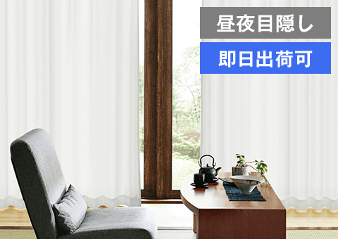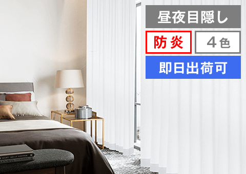 真っ白な遮光カーテンに、白と黒から選べる昼夜目隠しレースのセット