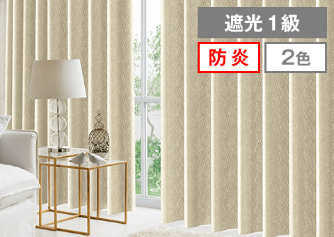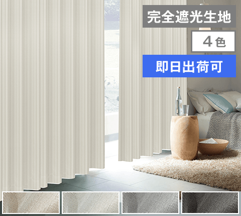 美しいヘリンボーンの織り地で上品な雰囲気を演出!完全遮光生地を使用し機能性にも優れたカーテン