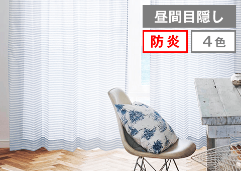 ナチュラルなお部屋にも合わせやすい優しい色合いのシンプルなボーダー柄レースカーテン