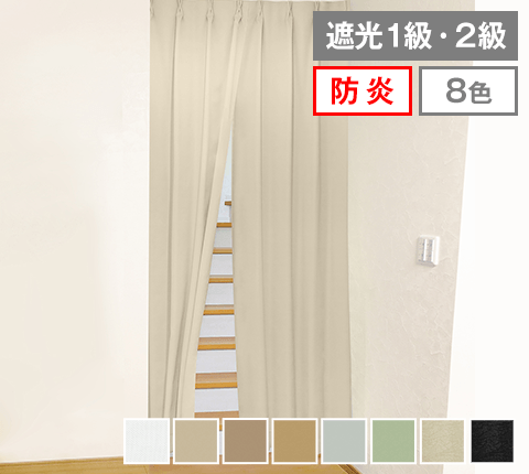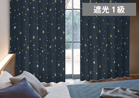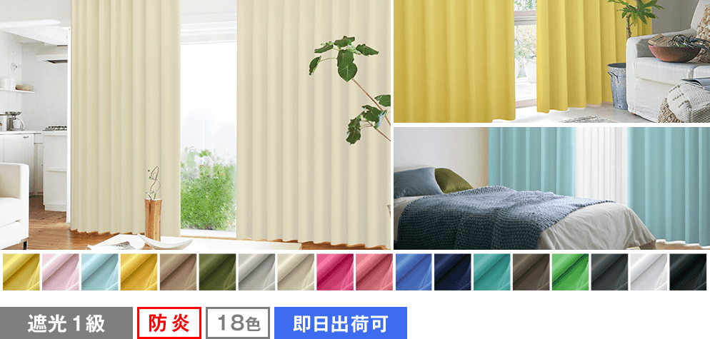 快適なリラックス空間づくりのためのカーテン。遮光率100%の生地を使用