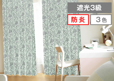 クラシカルで上品な花柄デザインのジャガード織防炎・遮光カーテン
