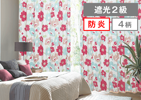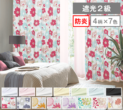 可愛すぎない、けれどお部屋のアクセントになるフラワーデザインが人気の花柄遮光カーテン
