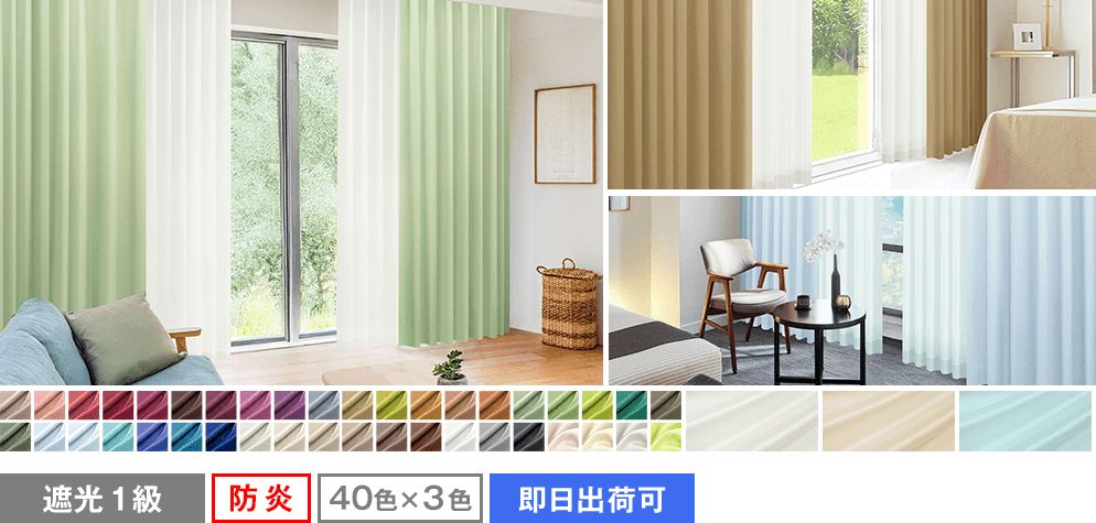 カーテンセット人気NO.1!40色の豊富なカラーから選べる1級遮光カーテンと高機能レースのカーテンセット