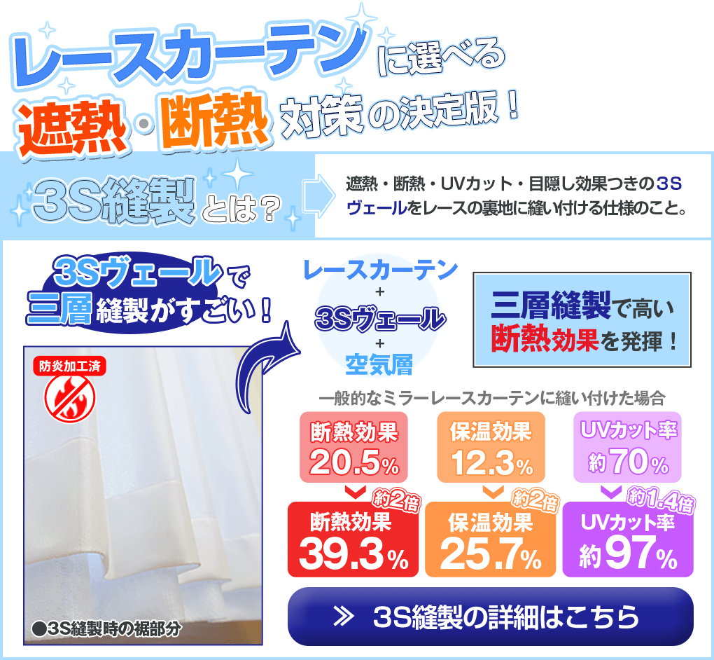 だからこそ、遮熱・断熱効果や保温効果が高いミラーレースや特殊な糸が編みこまれているレースカーテンを上手に選んで、冬の防寒・節電対策をしてみてはどうでしょうか。