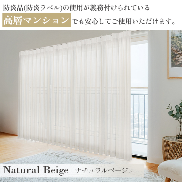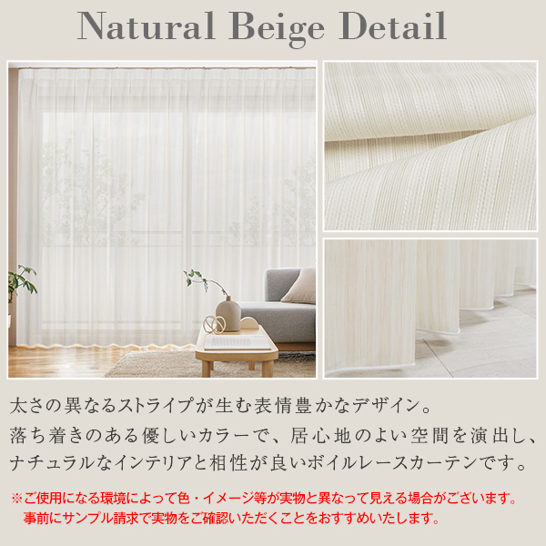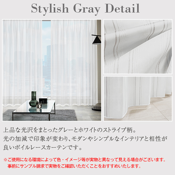 防炎ボイルレースカーテン「FineStripe(ファインストライプ)」 継ぎ目なし・幅500cm対応・昼目隠し・UVカット