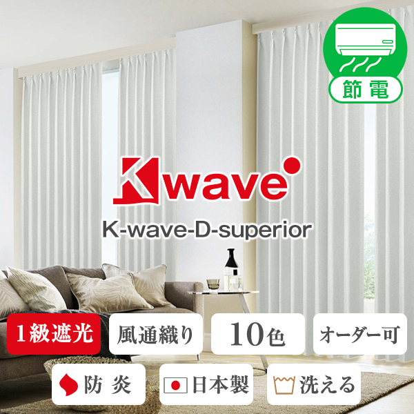省エネ節電カーテン 高級風通織り一級遮光カーテン「K-wave-D-superior」 Aサイズ:幅100cm×丈80cm~250cm:2枚組