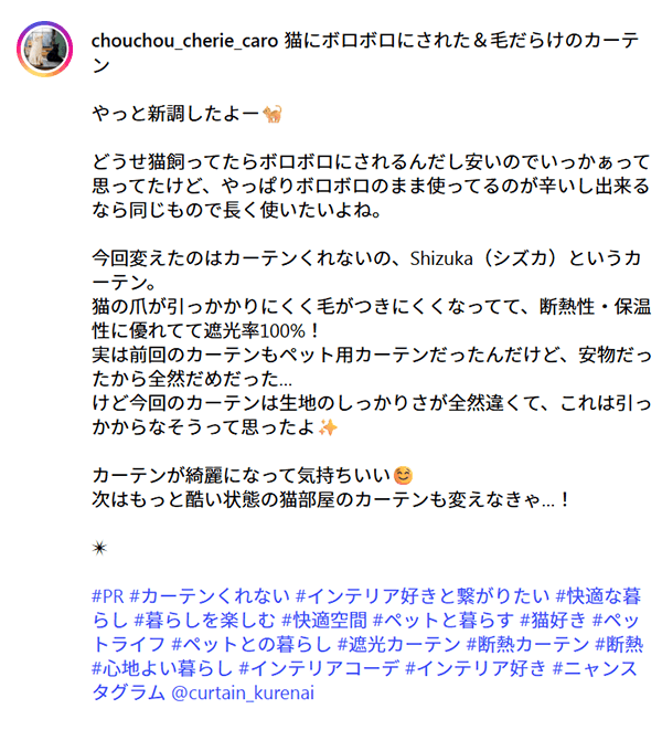 ケイスケさん★★★★★昼間寝ることが多いと言う理由とホームシアターをより楽しむためにこちらのShizuka1cm単位でオーダーしてフックもAフックに変えて作って貰いました。僕は完全遮光だという点のみに惹かれてこちらを購入しましたがビックリするほど暗くしてくれます。昼でも暗さは夜と変わりません。防音に関しては元々外の音を気にしていないのであまりよく分かりません。こちらのカーテンを買うまで家にはカーテンがない状態だったので約2週間のカーテンのない生活とこのカーテンが来てからの生活の両方を体験しましたが、冷房の効きもすごくよくなり、カーテンがあるだけでいつもの設定温度で寒いくらい温度を保ってくれるところがすごいと思いました。また、カーテンに関してなんの知識もなく、こちらのサイトで書いていても自分が理解出来てない所は高槻の店舗で丁寧にお姉さんが教えてくださいました。遮光にかんしてはBフックがいいが、カーテンが綺麗に見えるのはAフックだからと自分のこだわりに合わせて一緒に考えてくれたり、店舗で注文しようとしたところ「今はクーポンが出てるからネットで注文した方がいい」とわざわざクーポンの取得方法やどのページから購入するかも全て教えてくれて親切なお店だと感じました。今後カーテン購入の機会があればここで購入しようと思います。良いカーテンをありがとうございました。2020年08月12日 12:04