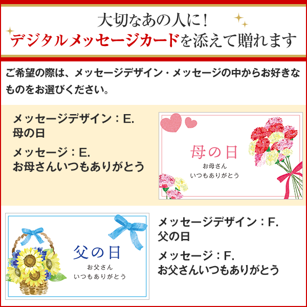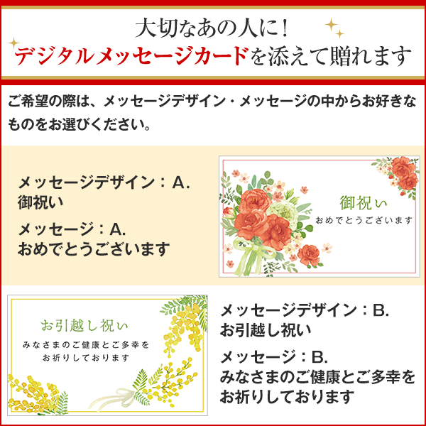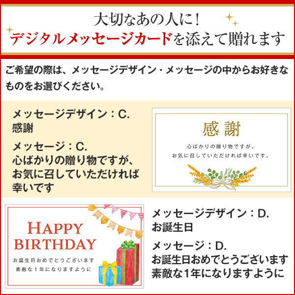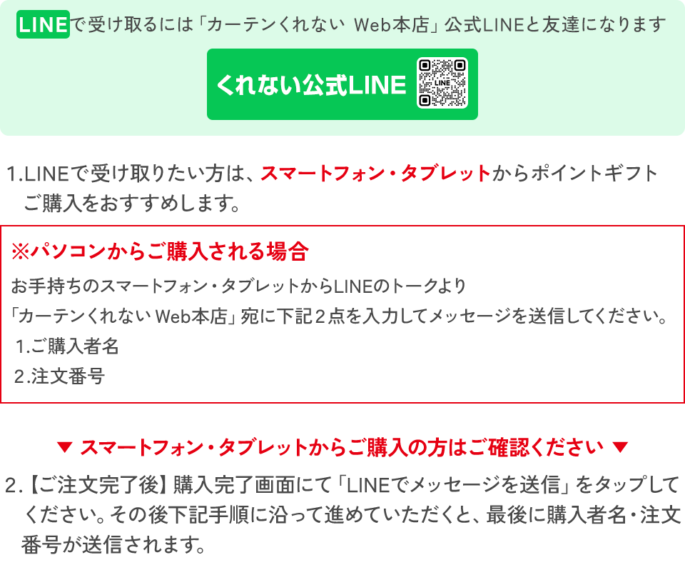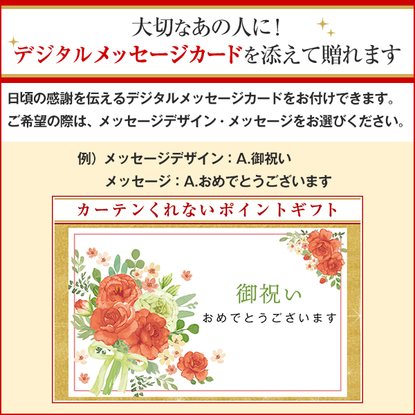 ご希望の場合は「くれないギフトカード」よりご注文下さい。