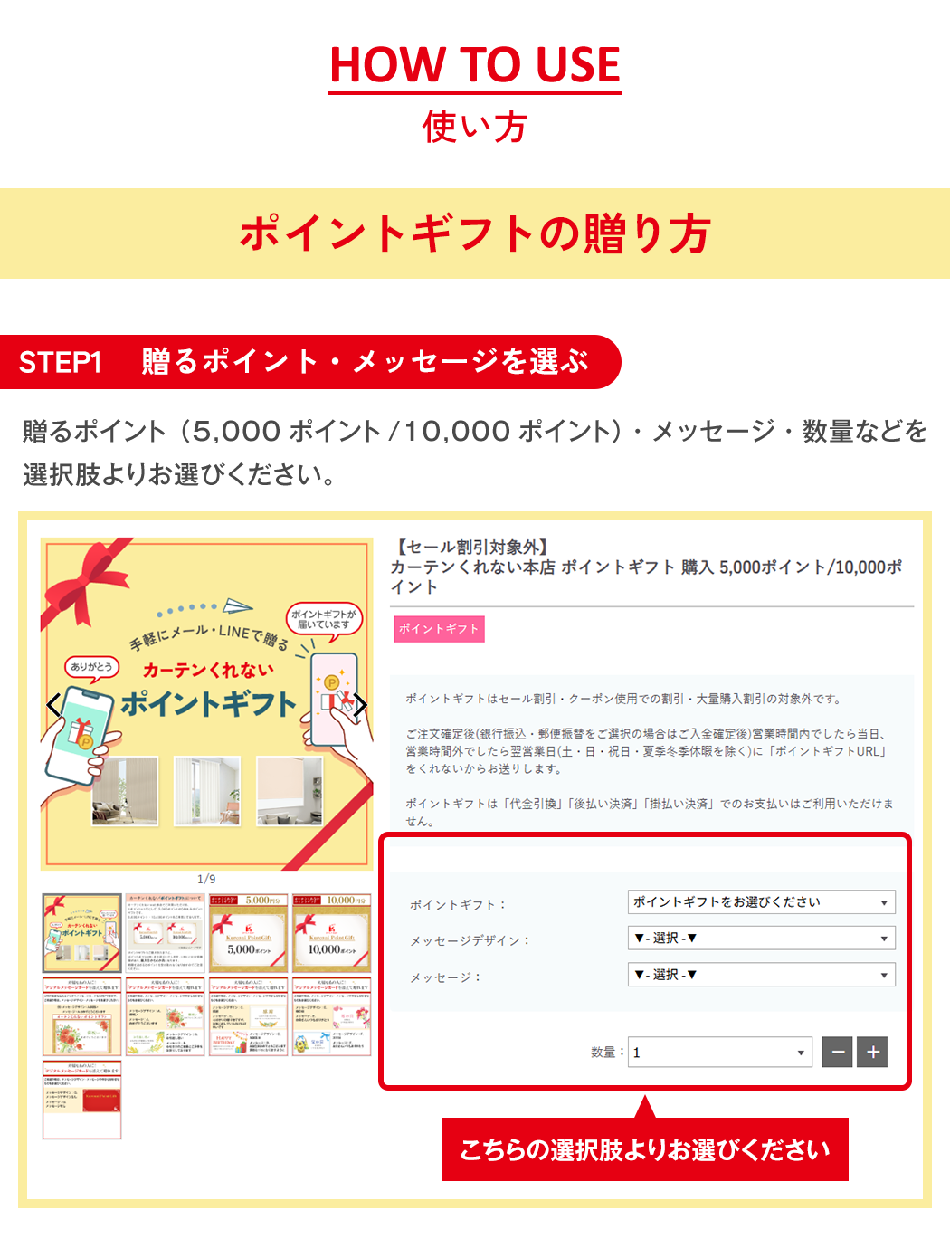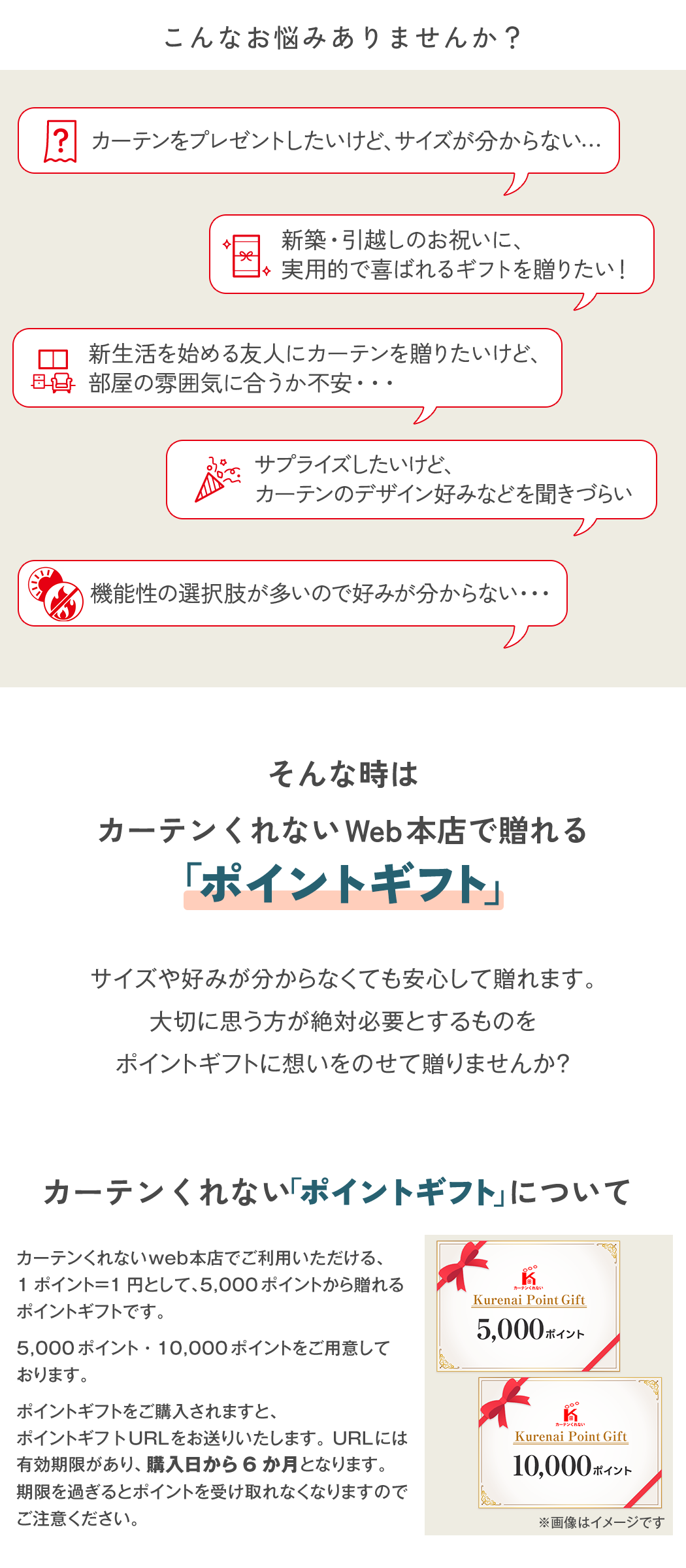 カーテンくれない本店 ポイントギフト 購入 5,000ポイント/10,000ポイント